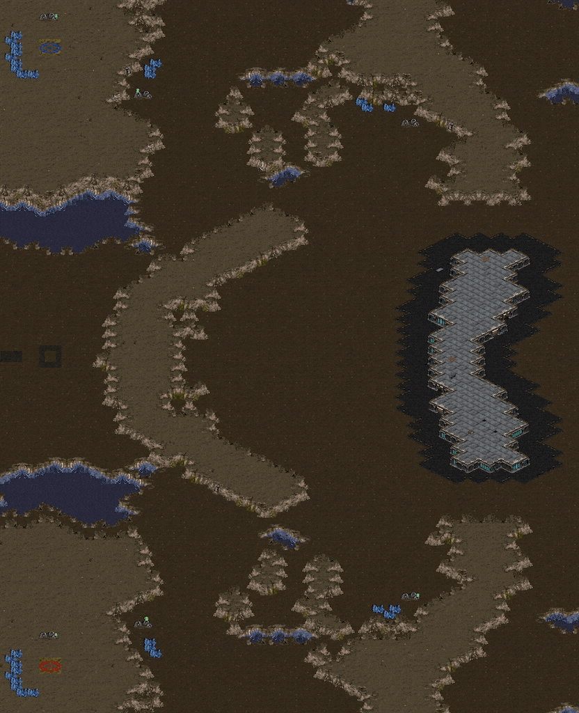 ㉱앞마당 미네랄 뒤는 견제 공간이 있습니다 해당 자리는 건설 가능 땅이라 몰래 건물 하면 좋아 보이네요
