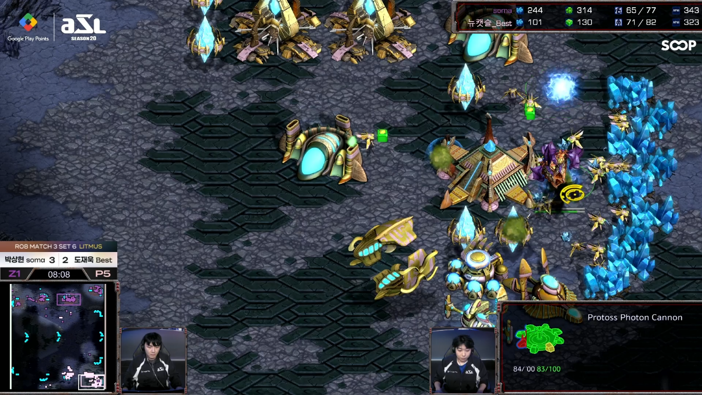 짭제 선수도 저글링,히드라로 맞받아치면서