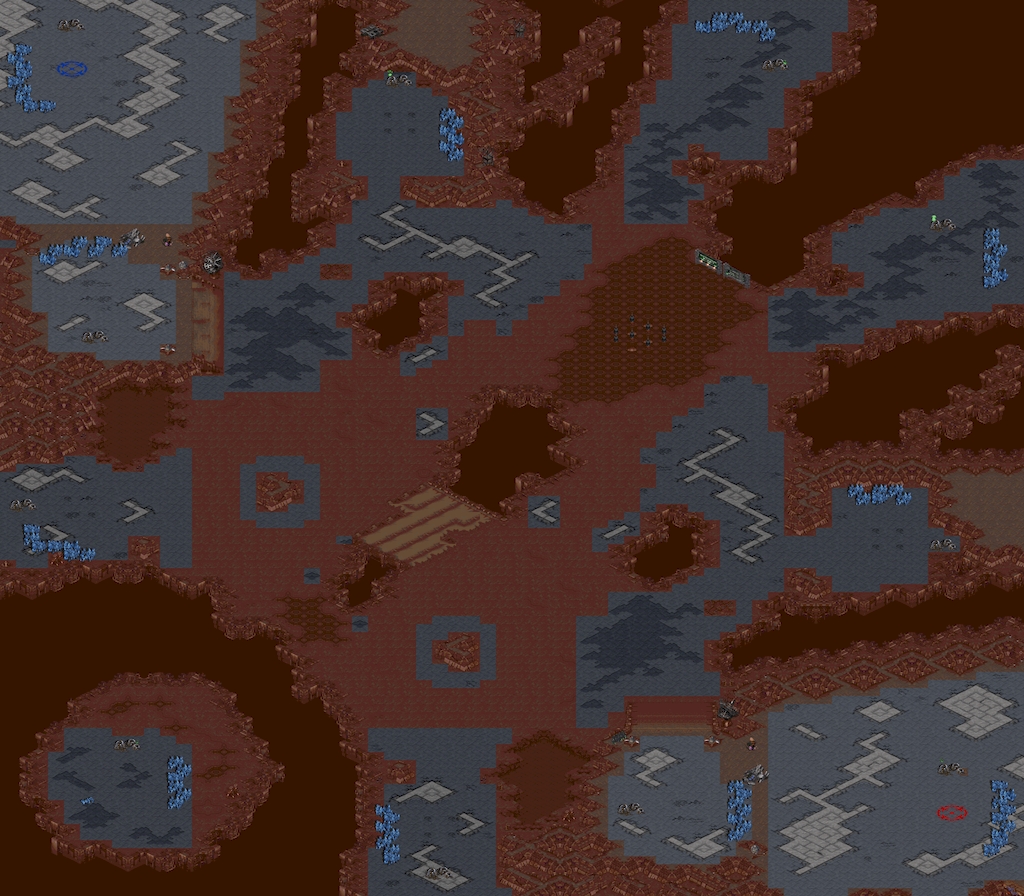 ♂본진 입구는 체력200 + 체력700 중립 건물이 있고요 픽셀 단위 조절을 안 해서 폭 2칸