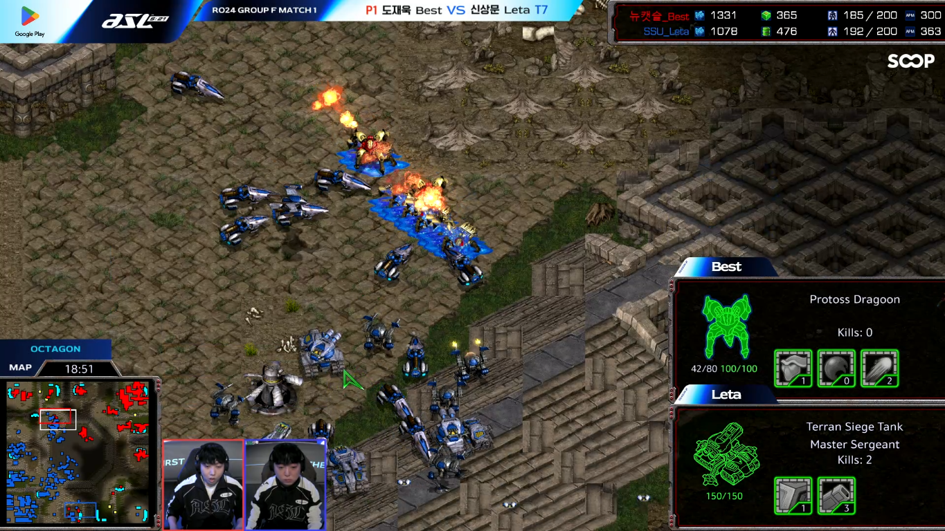 도재욱 선수의 셔틀템 공격이 막히고 메카닉 업테란이 완성되면서
